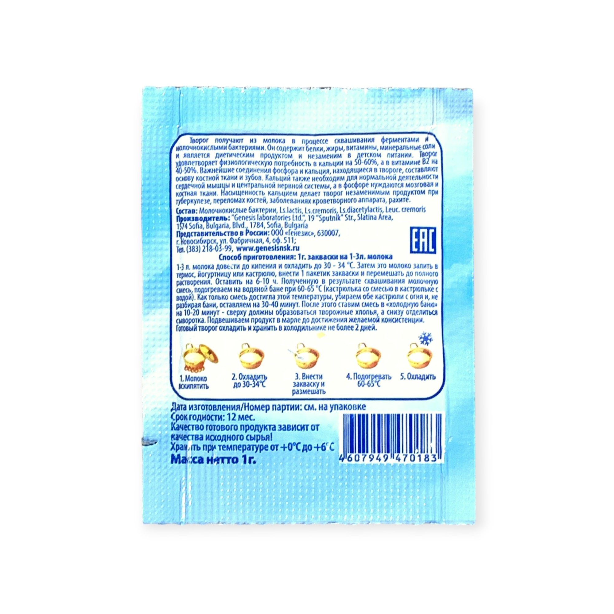 Закваска Творожок Genesis, 1 пакет от 100 руб. с доставкой. Пункт выдачи в Шахунье. Интернет магазин по сыроделию. Всё всегда в наличии.